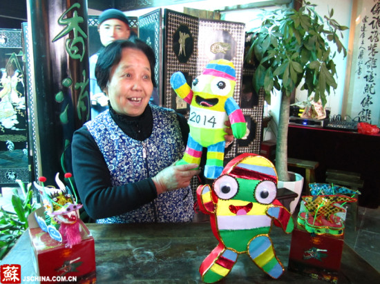 比赛现场,扎灯艺人们制作了各式各样的“砳砳”,这些材质不一、形态各异的“砳砳”代表着这些南京扎灯艺人的心愿。“作为一个南京人,我希望能通过多扎一点“砳砳””灯,让来南京游玩的游客了解青奥,2014是青奥年,用扎灯的形式给青奥打气。”扎灯艺人毛金海说着,给制作完成并点亮的“砳砳”灯贴了“nanjing”的logo。