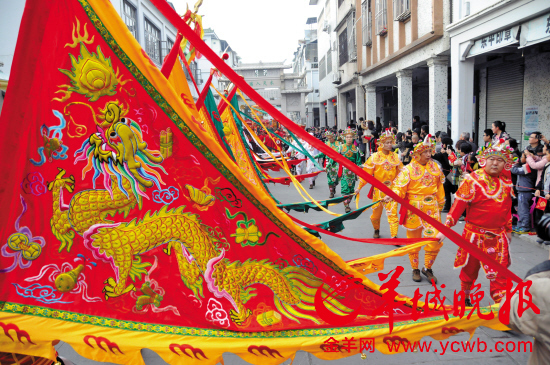 潮绣标旗、彩楣、五彩舞龙等潮汕传统文化元素为巡游活动“先锋部队”