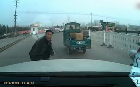 【实拍司机秀神技躲避碰瓷男】大街上突降一个不依不饶的碰瓷哥,如此的“敬业”实在让人叹为观止!幸亏司机大哥也不是吃素的,终凭借其精湛无比的车技,风骚的走位,完美躲避!