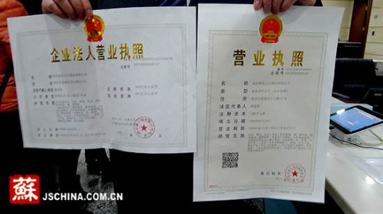 (原标题:江苏首张新版营业执照颁出)