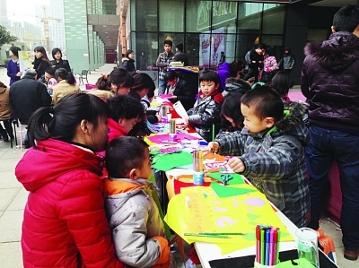 河西CBD管委会近日在嘉业国际购物中心广场举行了一场剪纸亲子活动,妈妈、孩子总计约150人参加。剪纸艺人现场表演才艺,教市民剪纸技巧。在妈妈的陪同帮助下,孩子们剪出了小马、汽车、兔子等图案,再来个创意组合,诞生了一幅幅精美的拼贴图。任婧 徐兢 摄