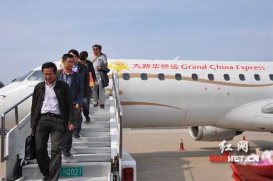 红网临沂3月30日讯(记者 刘容)3月30日,长沙——临沂首条直飞航线正式开通。下午12时50分,载有近80名乘客的GS6535航班从长沙起飞,经过1小时50分钟的飞行,14时40分抵达山东临沂。