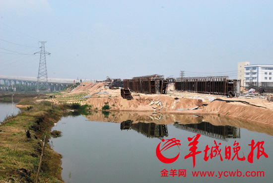 前日,记者前往大鳌特大桥施工现场看到,在新会睦洲码头一侧,引桥的连接道路已经铺设好,而在大鳌镇一侧,引桥的延长线还是一片鱼塘,里面还养着鱼,一直延伸到大鳌镇靠近中山的一侧,上桥只能走鱼塘中间临时铺设的泥土便道。