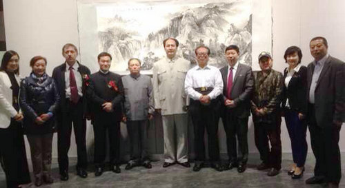 中外友人及文化艺术界人士齐聚王余根先生作品前合影留念