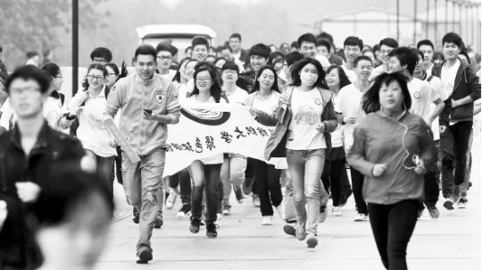10时许,一声令下,参赛选手依次列队开跑。专业队伍一上场,便把后面的人丢开几十米距离。“太累了,跑不动了。”很少参加体育锻炼的学生们跑了几百米后便开始减速,直至走完全程。