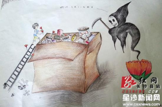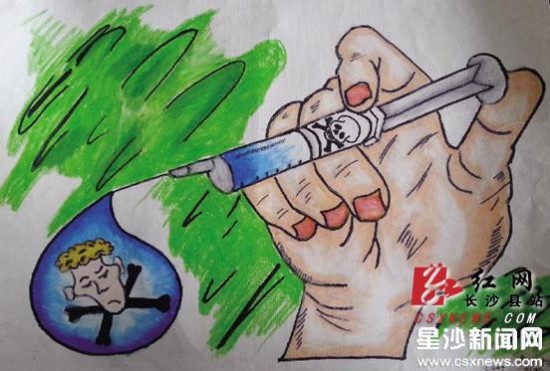 (原标题:长沙县启动禁毒宣传 校园小画家作漫画劝诫远离毒品)