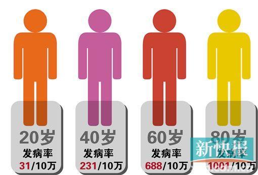 人群中40岁以前癌症发病都比较平稳,但45岁后直线上升,如20岁的发病率才31/10万,40岁231/10万,60岁688/10万,80岁达到1001/10万。