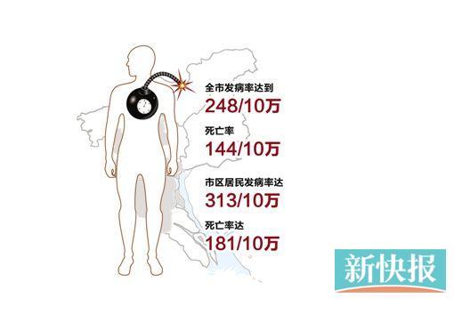 记者还从广州市疾病预防控制中心公布的最新全市恶性肿瘤监测数据了解到,全市癌症发病率达到248/10万,死亡率144/10万,其中市区居民癌症发病率和死亡率更高,发病率达到313/10万,死亡率达181/10万。广州市800万户籍居民中每年新发癌症病人2.2万人,0-74岁居民累积发病率为22%。户籍居民因癌症每年死亡约1.2万人,癌症死亡占全死因的25%,也就是说每年死亡人数中,有四分之一死于癌症,高于全省平均值。