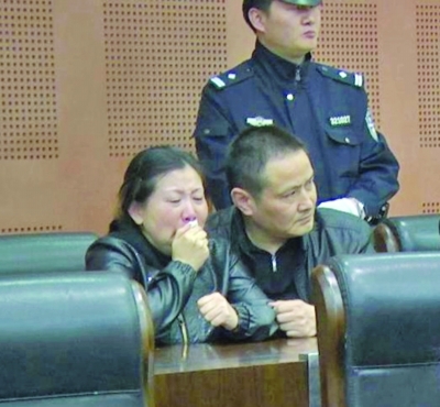法庭上,小祁的母亲仍在悲痛中,祁父在旁安慰她。 罗双江 摄