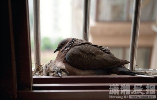 阳台上斑鸠来安家 长沙市民有爱记录全过程(组图)