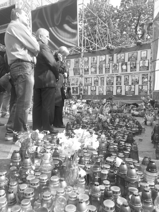 20日,利沃夫市民在市中心广场祭奠死去的示威者。刘畅摄