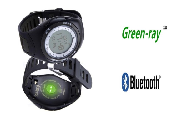 Green-ray 光电传感器由两个绿色波长的发光LED 和一个光敏传感器组成,位于心率表的背部。 其原理是基于手臂血管中的血液在脉动的时候会发生密度改变而引起透光率的变化。发光LED 发出绿色波长的光波,光敏传感器可以接受手臂皮肤的反射光并感测光场强度的变化并换算成心率。目前美国的MIO ALPHA ,FITBOX HXM 以及 Adidas SMART RUN 心率表采用这种技术。其最大的优点就是完全抛弃了心率胸带,并可以持续测量心率,计算平均心率,记录最大心率,设置心率报警区间。
