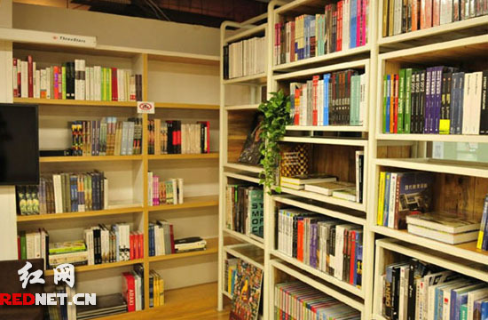 (读书会:平时举办一些小型讲座,可凭会员卡自习。书架上是一些有关设计类的外文书籍)