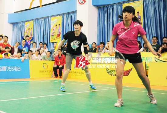 红网长沙5月17日讯(记者 朱青)作为湘籍羽毛球健儿,奥运冠军龚智超、世界冠军鲍春来、郑波5月17日下午亮相金鹰955电台主办的“2014长沙民间羽毛球挑战赛”,与评选出的五组民间球王现场过招。