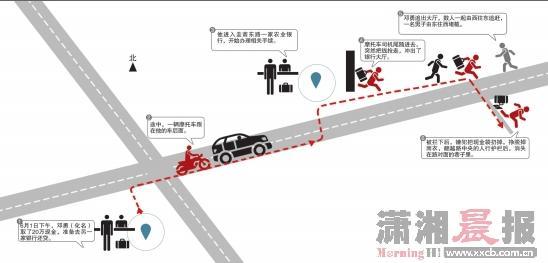 为了解嫌疑人的更多信息,张煜调看了相关路段的交通监控录像。“邓勇在取了20万元之后,他的车后面就有一辆摩托车跟着。他拿着钱进农业银行的大厅后,摩托车司机也尾随着进去了。”