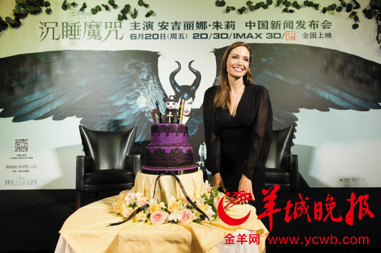 为了宣传本月20日上映的电影《沉睡魔咒》,“女神”安吉丽娜·朱莉昨日到访中国并在上海出席新闻发布会。华丽亮相的朱莉一身黑色及地长裙,显得既霸气又充满魅惑,这身装束很好地诠释了她在剧情中扮演的玛琳菲森这一角色。今天是朱莉的生日,在发布会现场,主办方为她献上了一个有玛琳菲森造型和上海地标建筑的生日蛋糕,这让她分外惊喜。