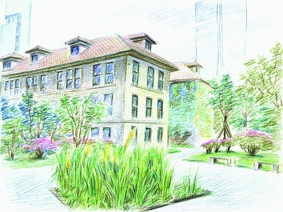 新扩建后的南京鼓楼医院,现代化的玻璃建筑群里,保留着几栋青砖老楼,在整洁的花木丛中,静静地述说着厚重的历史。青砖勾缝、红砖镶嵌,白色门窗,美国殖民期风格的建筑,这是南京第一座西式医院,创始于1892年。