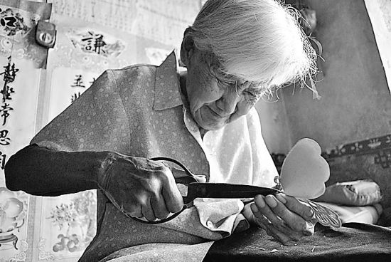 92岁的姚玉芬还有一项绝活,她虽然没有上过学不识字,但不管看到什么都能用红纸剪出来。在老人居住的屋子,随处可见她的杰作,窗户上贴着“宝葫芦”,墙壁上贴着“小老鼠上灯台”,各种造型的剪纸人物栩栩如生。老人拿出她积攒的一些作品,公鸡、兔子、壁虎、青蛙,剪纸虽有大有小,但个个活灵活现。“以前,村里不管谁家办喜事,老太太都剪好喜字送过去,过年的时候她还拿着剪纸到集上去卖,很受乡亲们欢迎。”村支部书记邓长荣说,老人特别勤快,从年轻时候起就靠着一双巧手贴补家用。