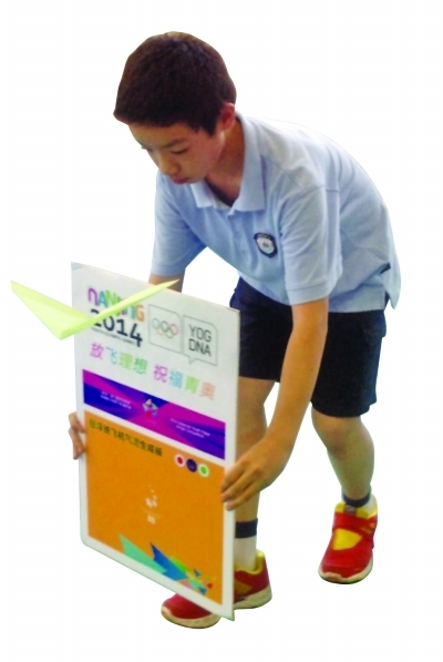 扬子晚报记者了解到,孩子们所用的纸飞机都是自己制作的,但材质都是一样的。比赛提供的纸材套装里有两种纸张,一种是印有青奥相关图案的A4纸张,有红、绿、蓝等颜色,另一种是非常轻薄的绿色半透明的纸,则是用来制作悬浮飞机。