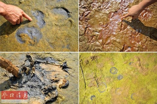 资料图片:中国某地被重金属污染后的土地,被雨水侵泡后出现各种颜色(2013年5月28日摄,拼版图片)。新华社记者 陆波岸 摄