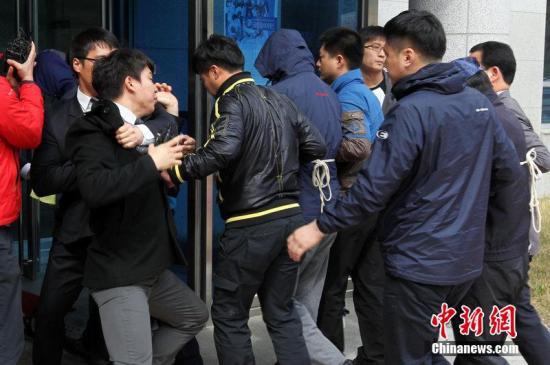 当地时间2014年4月22日,韩国光州,韩国检警联合调查本部批准逮捕了“岁月”号的一等航海士姜某(42岁)、申某(34岁),二等航海士金某(47岁)和轮机长朴某(54岁)。他们涉嫌“遗弃致死罪”和违反《海难救助法》。图片来源:CFP视觉中国
