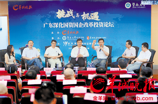 为分享、探讨广东混合所有制经济改革的理论与实践,推动广东国企深化改革,实现国企民企共赢发展,7月5日,由羊城晚报社主办、暨南大学经济学院承办、广州市创势翔投资有限公司与广州市证券投资行业商会联合协办的“挑战与机遇——广东深化国资国企改革投资论坛”在广州举行,论坛嘉宾的精彩发言及互动对话吸引了来自政府部门、企业界、投资界、学界共200多人参加。