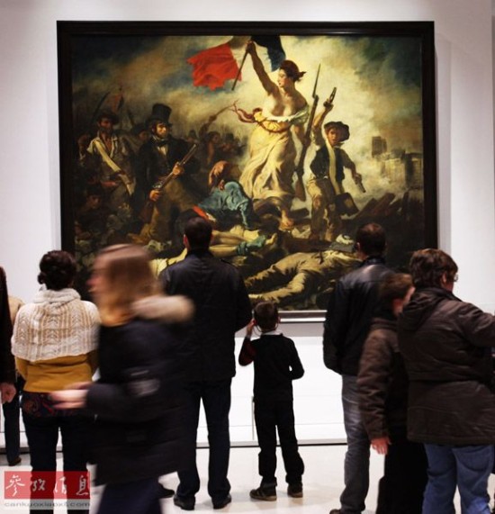 这是人们在卢浮宫朗斯分馆欣赏名画《自由引导人民》的资料照片。(2012年12月16日摄)新华社记者高静摄