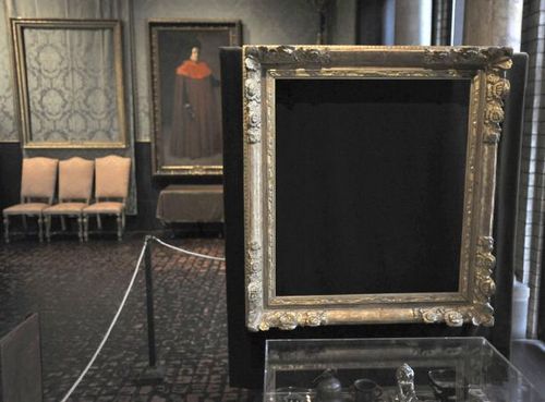 波士顿伊莎贝拉•斯图亚特•佳德纳博物馆,名画被盗后留下的画框。
