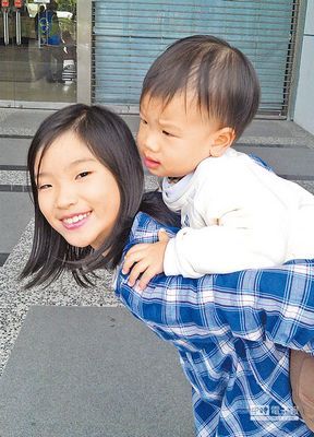 台湾生育率走低,一胎、不生成常态,像这样姐背弟的温馨画面难得一见。(来源:台湾《中国时报》)