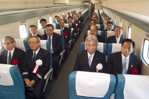 日本国土交通相太田昭宏(前排右一)试乘试运行列车(网页截图)