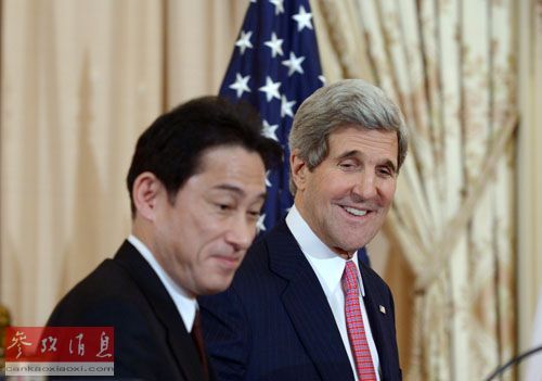 资料图片:2月7日,在美国首都华盛顿,美国国务卿克里(右)和日本外相岸田文雄会晤后会见记者。新华社记者殷博古摄