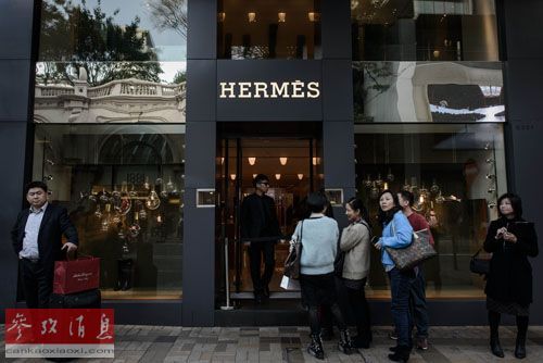 内地游客在香港一家奢侈品商店门口排队等待购物