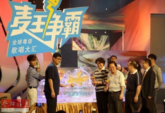 资料图片:由广东电视台珠江频道联合广东电台发起主办的《麦王争霸》全球粤语歌唱大汇在广州启动。