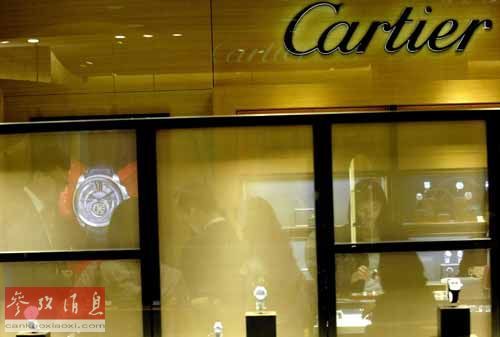 资料图片:图为2010年10月5日,游客在香港海港城的卡地亚专卖店购买奢侈品。新华社发