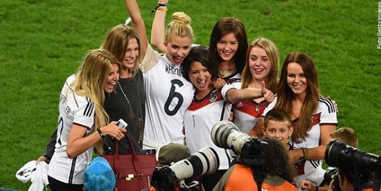 世界杯决赛,美艳的德国太太团成为了一道亮丽的风景线,她们为自己的男人们助威着,赛后也共同分享着这胜利的喜悦,这冠军的荣耀。