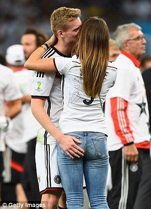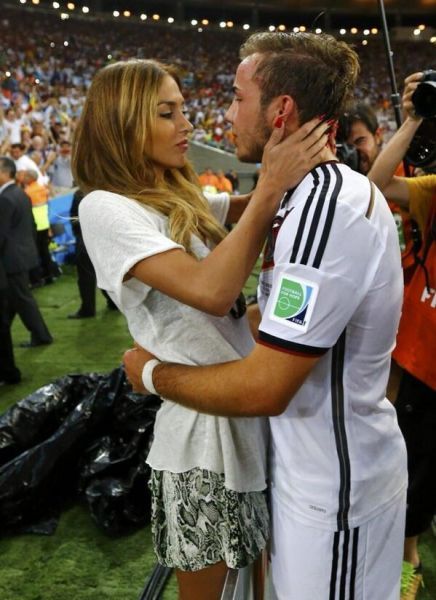 比赛中打入制胜一球的格策来到女友身边,迫不及待地和女友一起分享这场胜利,他们没有泪水,但收获的幸福是同样的,两人拥抱着,充满爱意的搂着对方。施魏因施泰格则吧自己的奖牌挂在了女友脖子上,这是他们共同的奖牌。