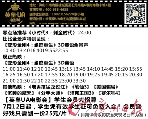 UME全新形象闪亮登场,即日起至8月31日2D/3D电影只需38元,学生35元《变形金刚4》3D 55元(4D、VIP厅除外)