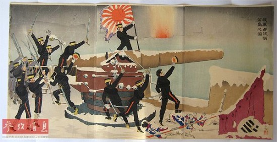 甲午战争时期描述日军占领刘公岛的日本绘画作品(资料图片)