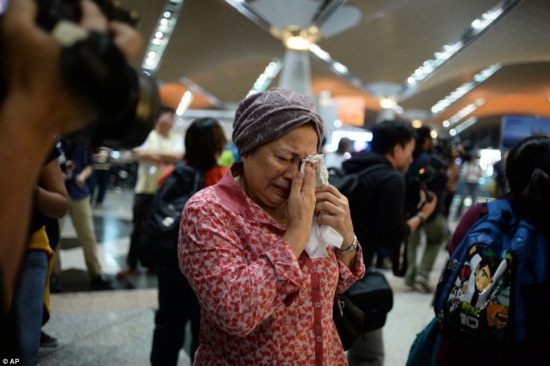 美联社报道,在地球另一端的马来西亚,数名罹难者家属来到吉隆坡国际机场。