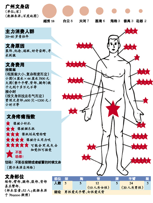 然而作为一门小众艺术,文身行业对很多人而言是神秘的。广州市哪个区的文身店最多?文身师的工作状态如何?文身行业的成本构成怎样?文身消费的主力人群又是何人?本报为您一探究竟。