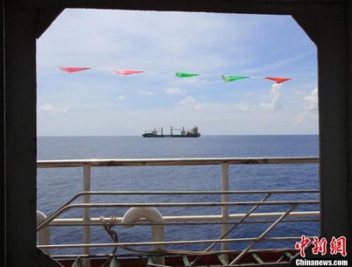 经过连续90多小时破浪前行,海南赴南沙捕捞船队于10日上午10时许穿过北纬12度线,进入南沙海区航行。南沙群岛扼控太平洋与印度洋的海上交通线,记者上午不时看到有大型集装箱船从船队不远处驶过。王晓斌 摄