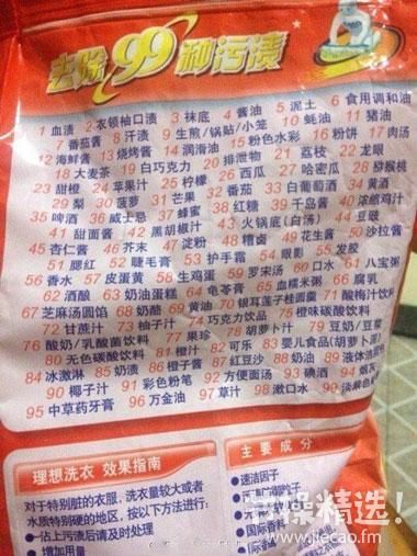 说着说着又有点饿了,又在纠结晚饭要吃神马?每次陷于这种挣扎的时候,节操姐都会不由自主的看一眼洗衣粉袋子,就像这样.。.