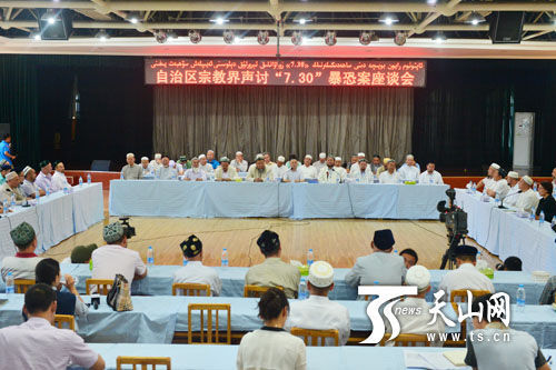 8月1日下午,自治区宗教界声讨“7·30”暴恐事件座谈会现场。