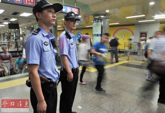 报道说,在中国南部的大城市广州,自5月份发生火车站砍人事件之后,也开始采取与北京同等级别的措施。此外,上海的地铁也开始有武警进行戒备。