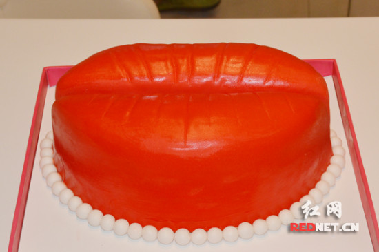 (专为七夕情人节设计的一款红唇蛋糕。)