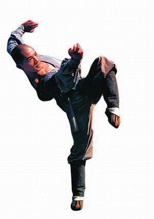片中大反派小福王的独门绝技,即旋身跃起,头内脚外,做平行回旋踢,四周众人无不中脚必死。唯有少林童子功中一招“童子拜佛”可破。