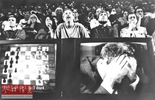 资料图片:1997年5月11日,美国IBM超级计算机“深蓝”击败当时的世界棋王卡斯帕罗夫。图为棋迷在纽约通过电视观看此次国际象棋人机大战。