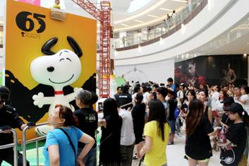 除了大荧幕,史努比在地面频道也展开了强大攻势,华润置地与之合作的 “华润万象城SNOOPY?PEANUTS 65周年全国巡展”已经持续近半年,誓要将这只美国人最爱的小狗深埋进国人的心中。