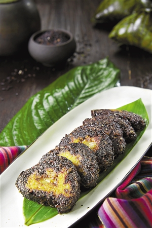 桂小厨一直讲究挖掘地道的原材料,传统手工黑米粽可以让大家尝尝鲜,大厨每天包制新鲜的粽子,并且通过开放厨房展示给大家,为这个节日增添一丝温情。选用至少3张粽叶,叶面朝上,平铺交叠,而后依次铺上一层黑糯米,一层绿豆,放上一条五花肉,再依次铺上一层绿豆,一层黑糯米,其中黑糯米都是通过清水浸泡4个小时,五花肉也是经过秘制腌肉酱腌制的。然后将粽叶紧紧地从四面合拢,成驼峰状,捆以稻草,最后置于锅中水煮4小时就可以了。烹煮过程中粽子香味扑鼻,吃起来口感软糯,绿豆成沙,有五花肉充分的油质浸在粽子中,咸香美味。