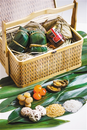 这次餐厅所有的粽子皆由点心大厨黎师傅带领他的团队手工制作,从原材料的选购到火候的控制,他都严格把关。由于所有香粽都是选用最新鲜的原材料,不添加任何防腐剂,黎师傅每天都需要根据当天的订单提前备货,只为给食客带来最健康、美味的端午香粽。其中,瑶柱裹蒸粽由香糯米、瑶柱、冬菇、蛋黄、栗子、鸡肉及咸猪肉等多种食材精制而成,蒸煮过后,糯米、瑶柱、鸡肉和猪肉完全融合在一起,吃起来香糯醇厚。精选上等香糯米和红豆制成的红豆沙枧水粽, 由于加了枧水,粽子蒸熟后通体金黄,散发淡淡的清香,入口糯中带韧、爽脆不腻,吃时蘸以白糖或蜂蜜,口感别具一格。款款香粽真材实料,用料讲究。搭配竹篮包装,美观大方又具传统特色,是居家品尝和馈赠亲友的佳品。